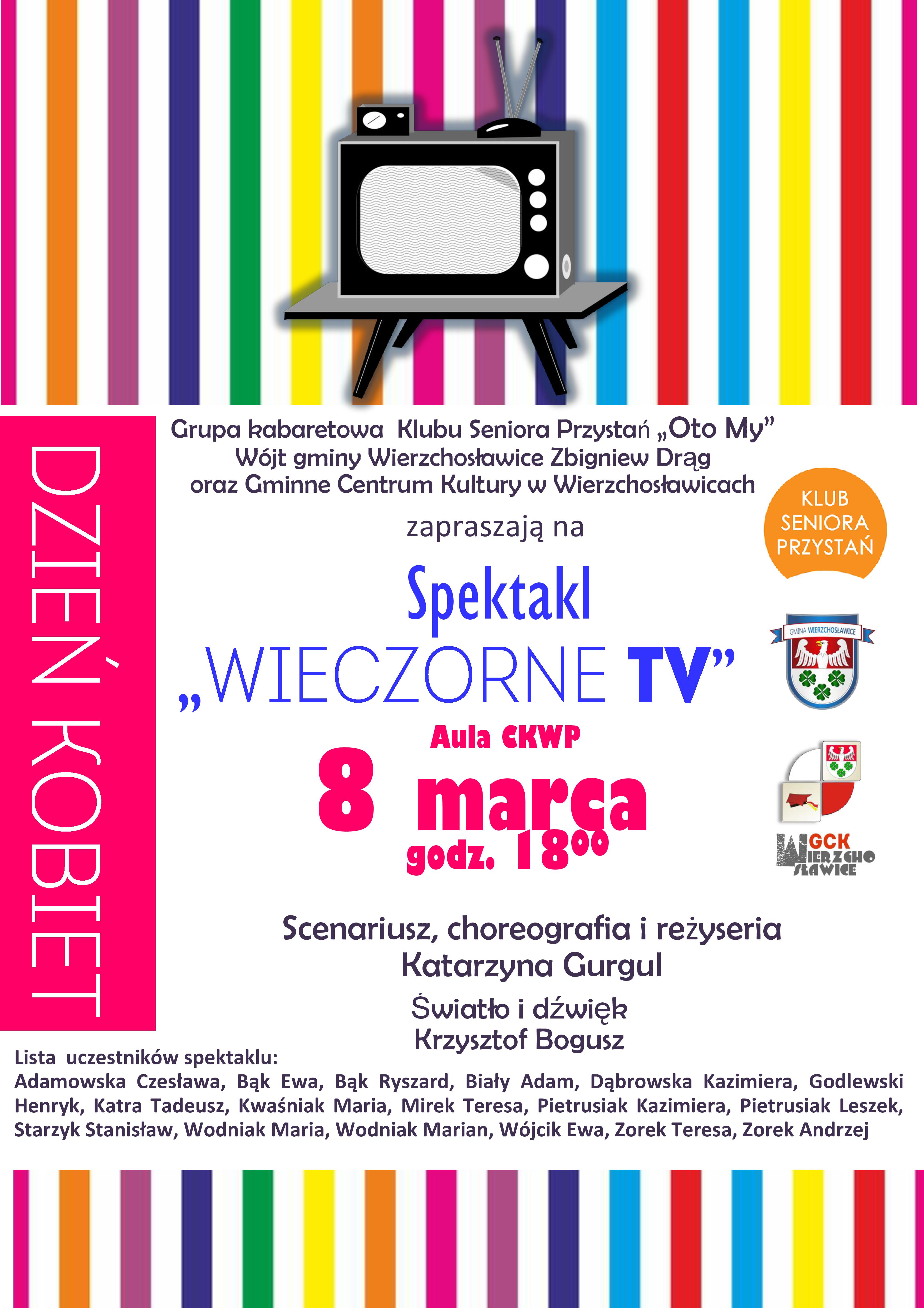 Już w najbliższy czwartek 8 marca na deskach małej sceny w Centrum Kultury Wsi Polskiej w Wierzchosławicach zostanie wystawione widowisko „Wieczorne TV” – to najnowsza produkcja grupy teatralnej „Oto My”. W jego przygotowaniu bierze udział liczna grupa członków Klub Seniora „Przystań” z Wierzchosławic. O scenariusz, reżyserię i choreografię zadbała Katarzyna Gurgul.