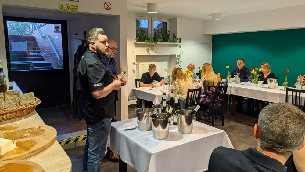 Całość dopełniła starannie skomponowana selekcja win – od wytrawnego Rieslinga, przez eleganckie Chardonnay i Cuvée Rosé, po Pinot Noir i półsłodkiego Solarisa – które podkreślały charakter poszczególnych dań i budowały harmonijną całość degustacji.